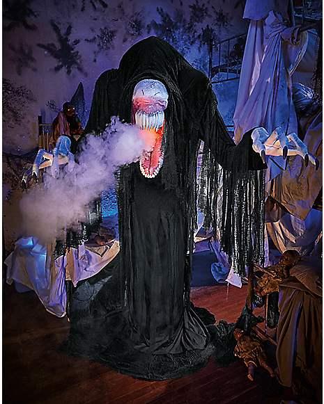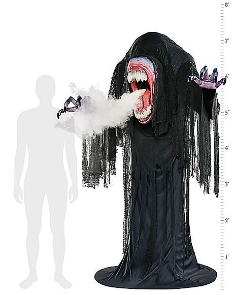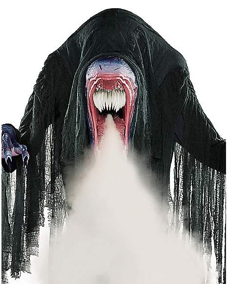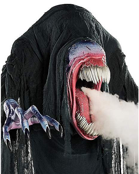 Once you put the Death Stalker Animatronic on display you always need to watch your back. His hunger is uncontrollable and at any moment he can come alive and begin moving side to side and you’ll know he’s ready to strike. Attach a fog machine to the animatronic and he’ll blow fog from his creepy tooth filled face adding to any Halloween scene.