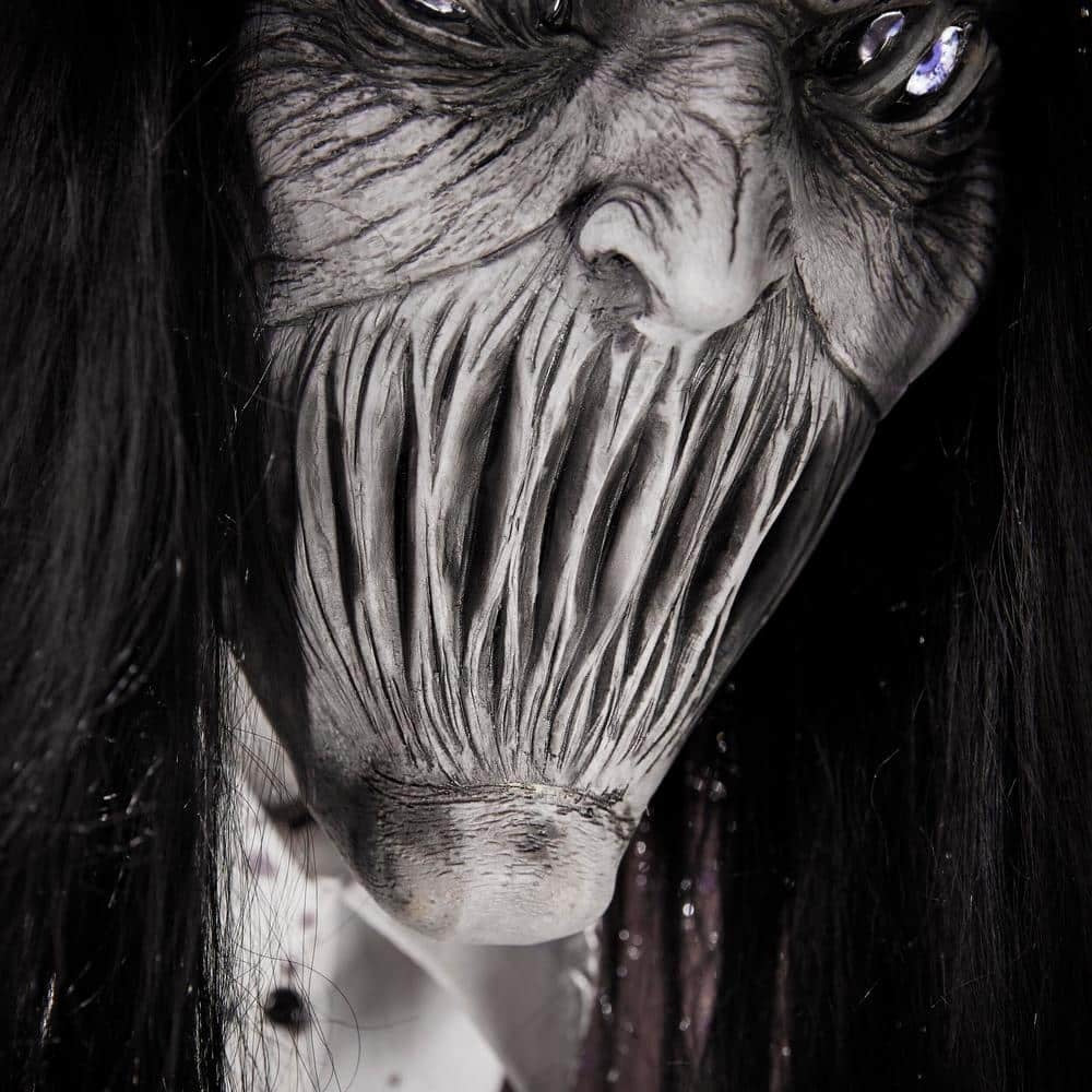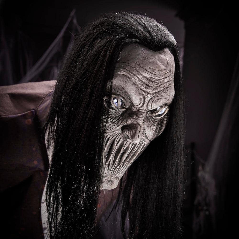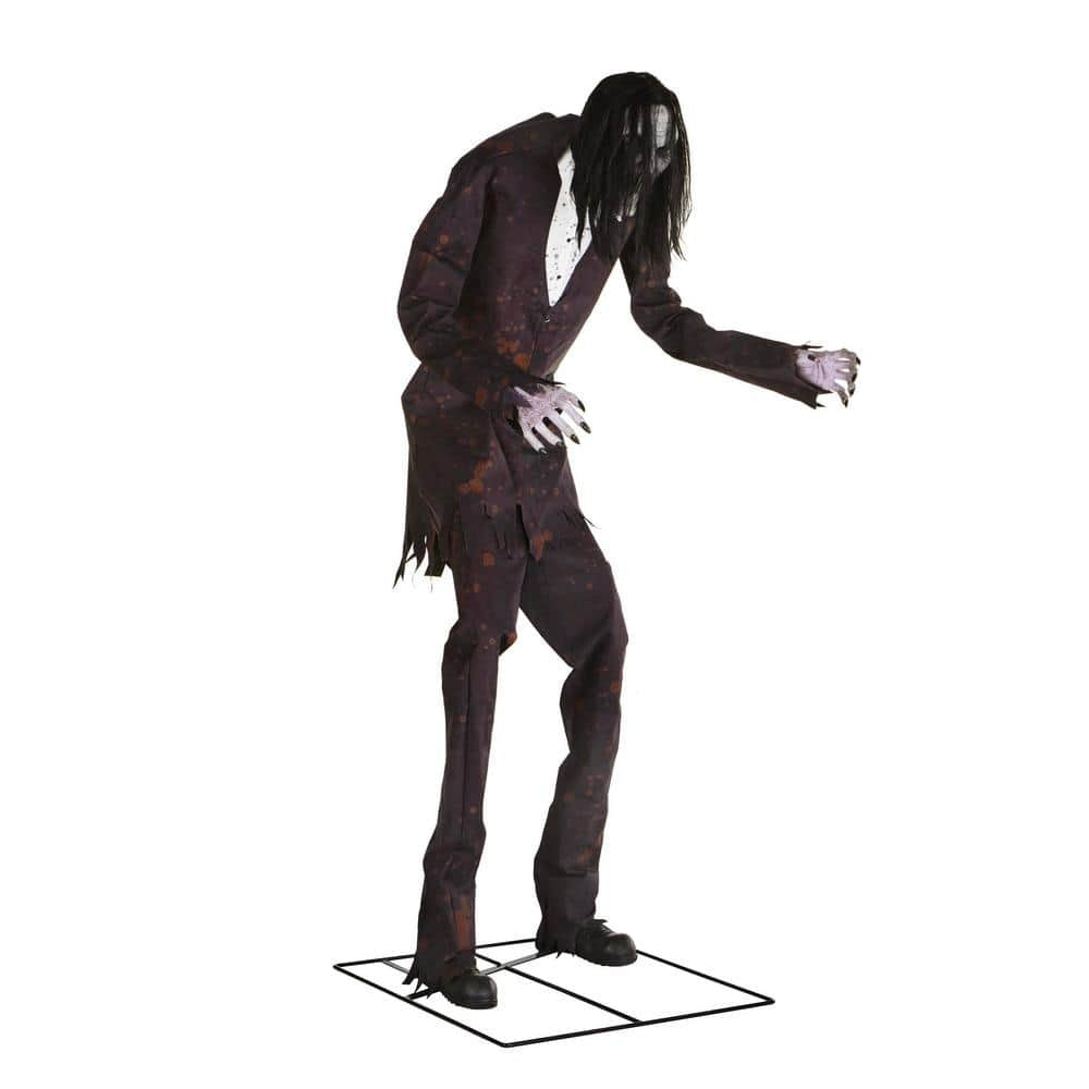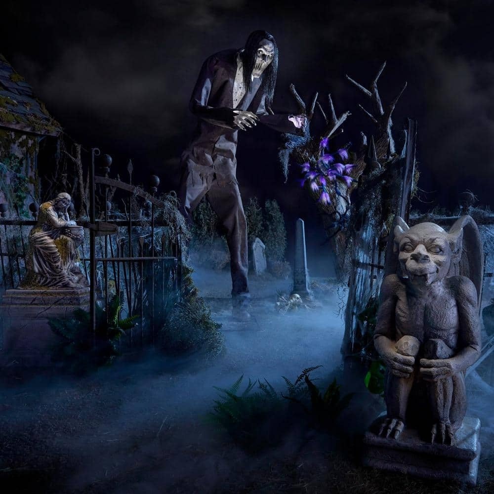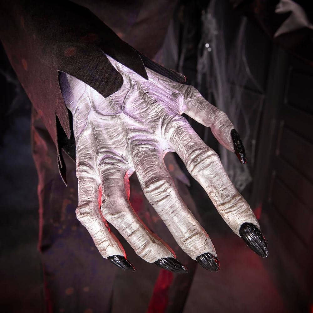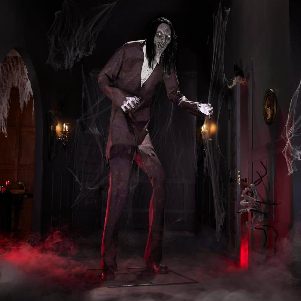 Create a spine-chilling effect with this 8 ft. Animated Boogeyman. It features a sensor that activates movement. lights and speech. Place this in your home as a great addition to your Halloween decor. The LED light-up lights bring a ghoulish glow.
