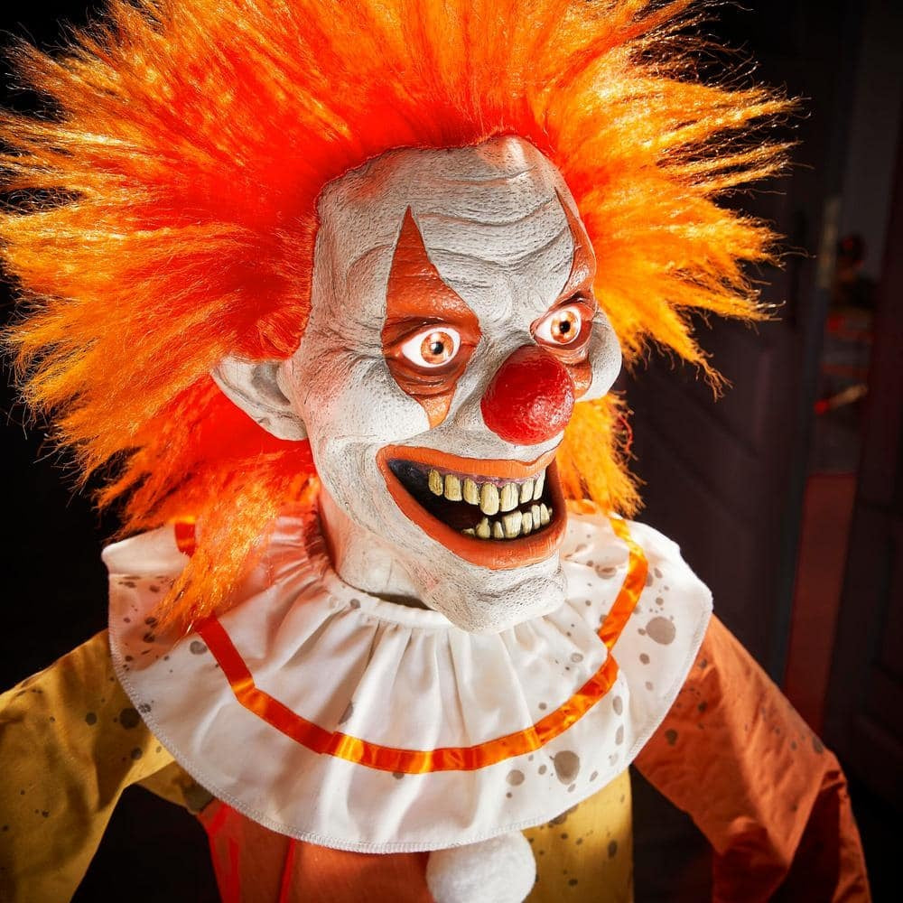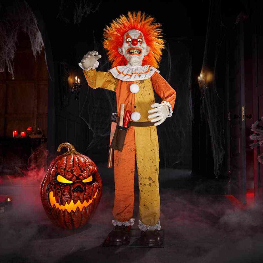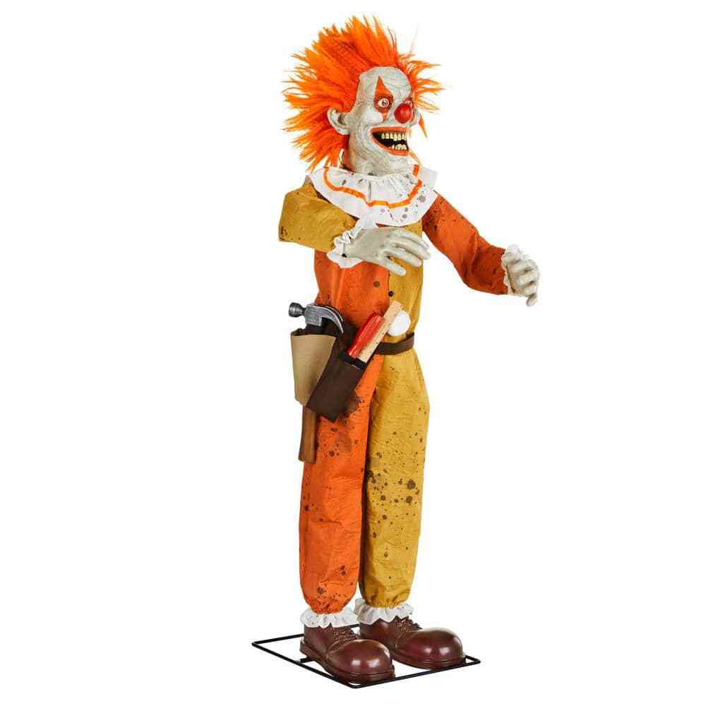 This guy can't wait to scare you and give you a good chuckle. The 4.5 ft. Animated Sinister Steve is a haunted clown with LED light-up eyes who tells jokes. This clown wears a tool belt. so try posing him near an unfinished home project.