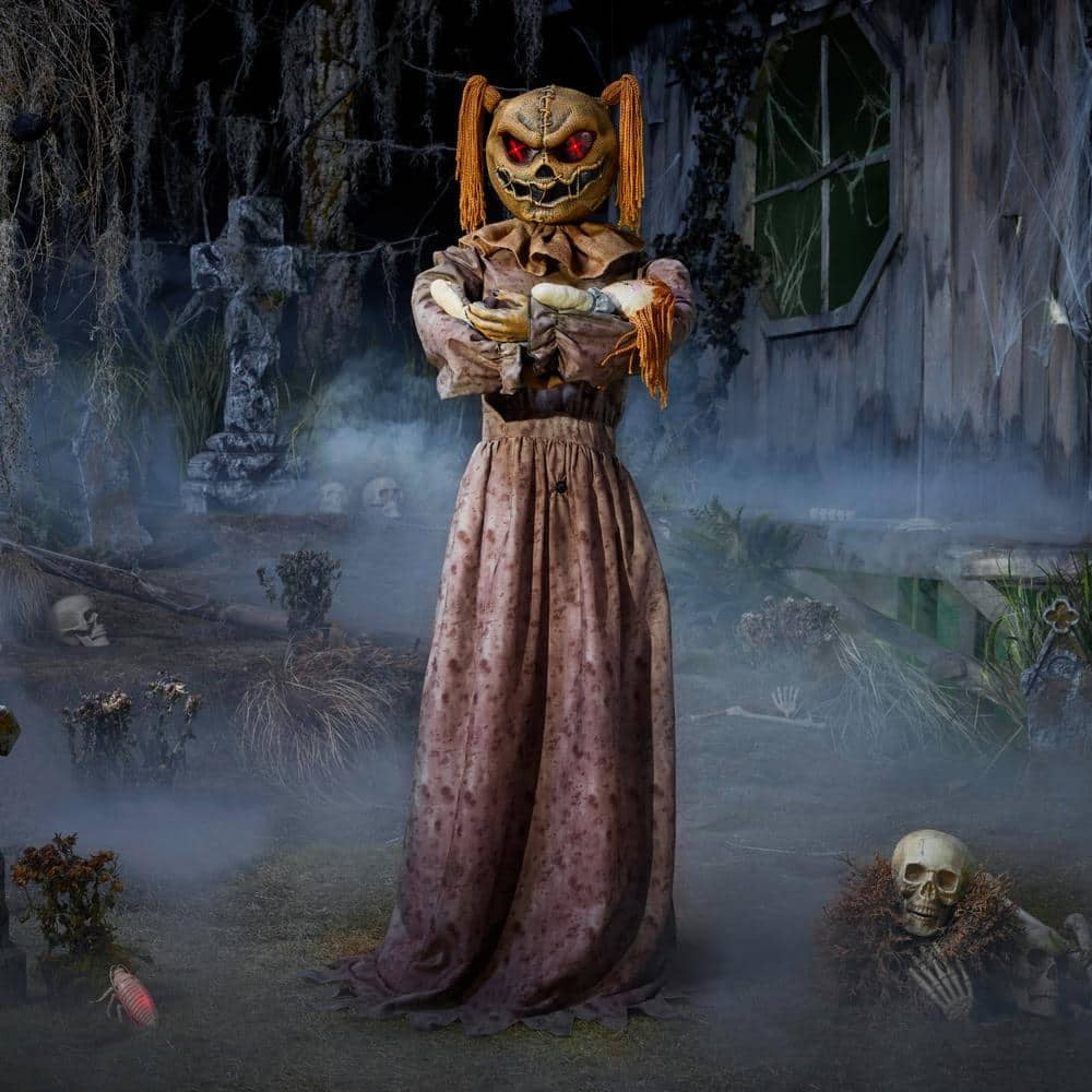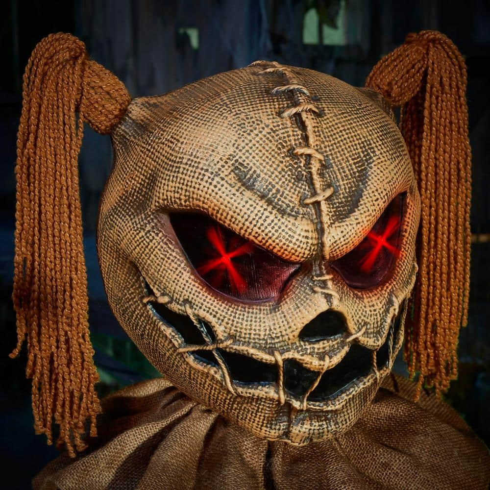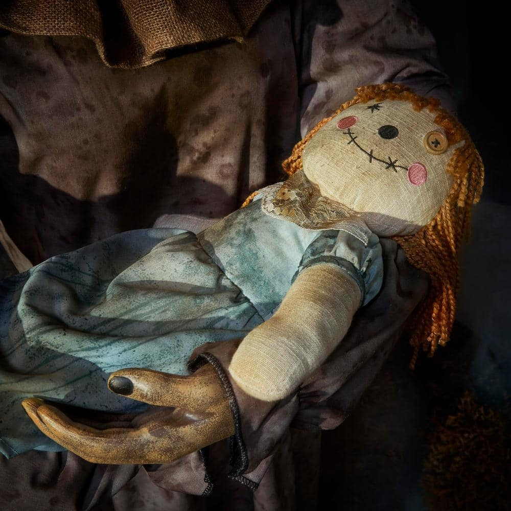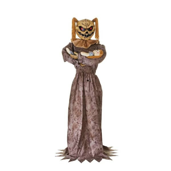 The 5.5 ft. Animated LED Sitter is a demonic hag that carries a ragdoll baby and eerily rocks it side to side as blood-curdling sounds play. This life-sized figure has bright LED lights in the eyes that illuminate the night sky.