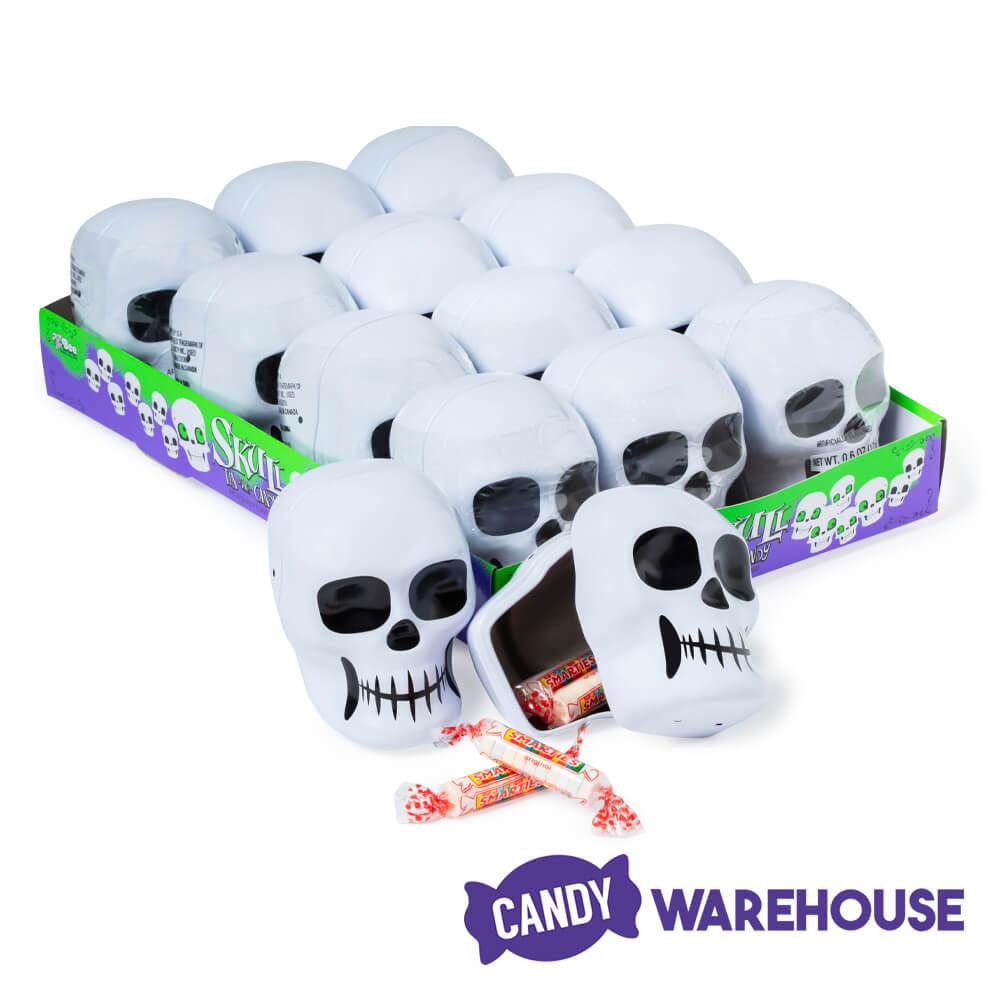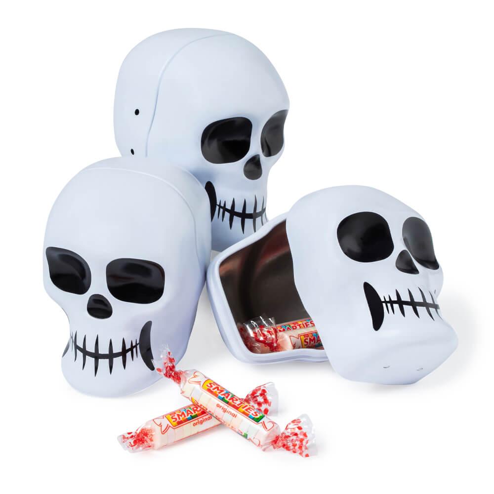 Stop scratching your head over what to bring to the office or classroom this Halloween by snagging this 12-piece box of Bee International skull tins with Smarties. The creepy cranium tin filled with individually wrapped?Smarties candy is a must-have collectible the recipient can treasure for years. Kids find hundreds of clever uses for the tin once the body-shaped candy?is gone. Candy Warehouse thinks this frightening tin with candy makes the best Halloween party favor. and trick-or-treaters won t egg your home when they catch sight of the 3D skull tins. Whether you re dressing as a skeleton. zombie. or vampire this year. our skulls and Smarties display box is a no-brainer addition to the fun.