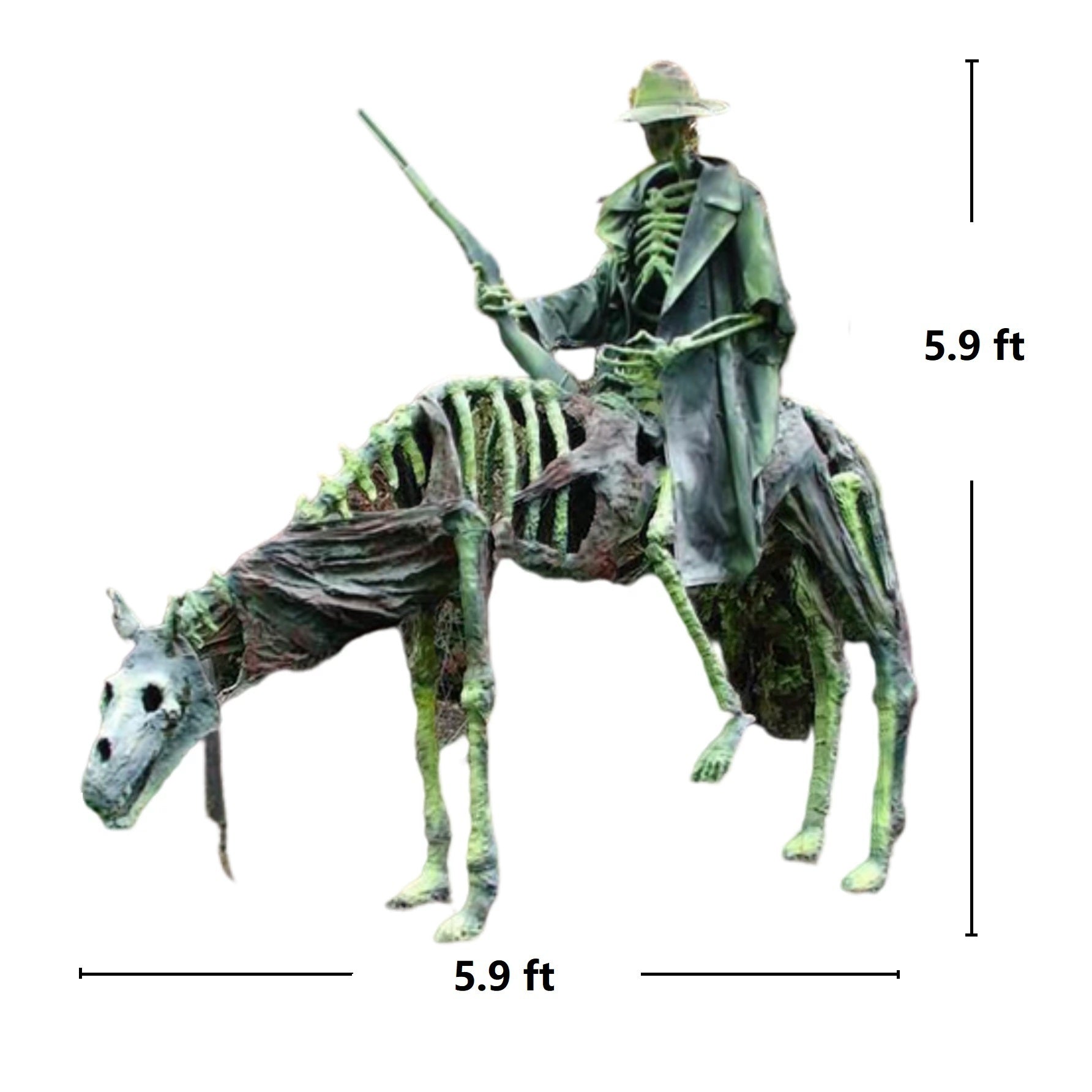 These creepy Halloween decorationshave a creepy skeleton holding ashotgun.Forget about ghosts andwitches this year and add this creepy cowboy to your Halloween series.Hewas riding on his skeleton horse.even more terrifying. as if death had descended.
