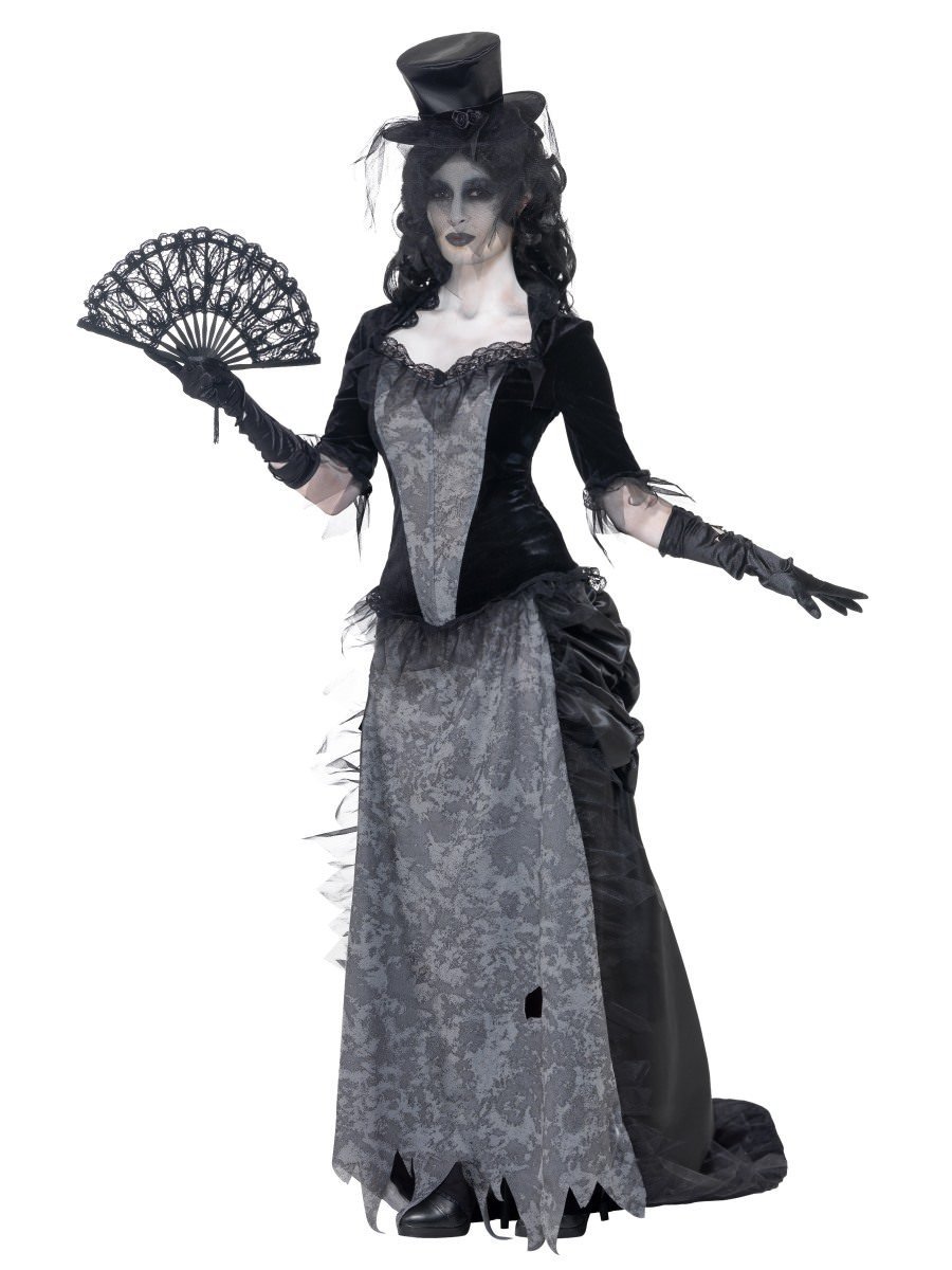 Ghost Town Black Widow Costume. Grey. with Top. Skirt. Hat