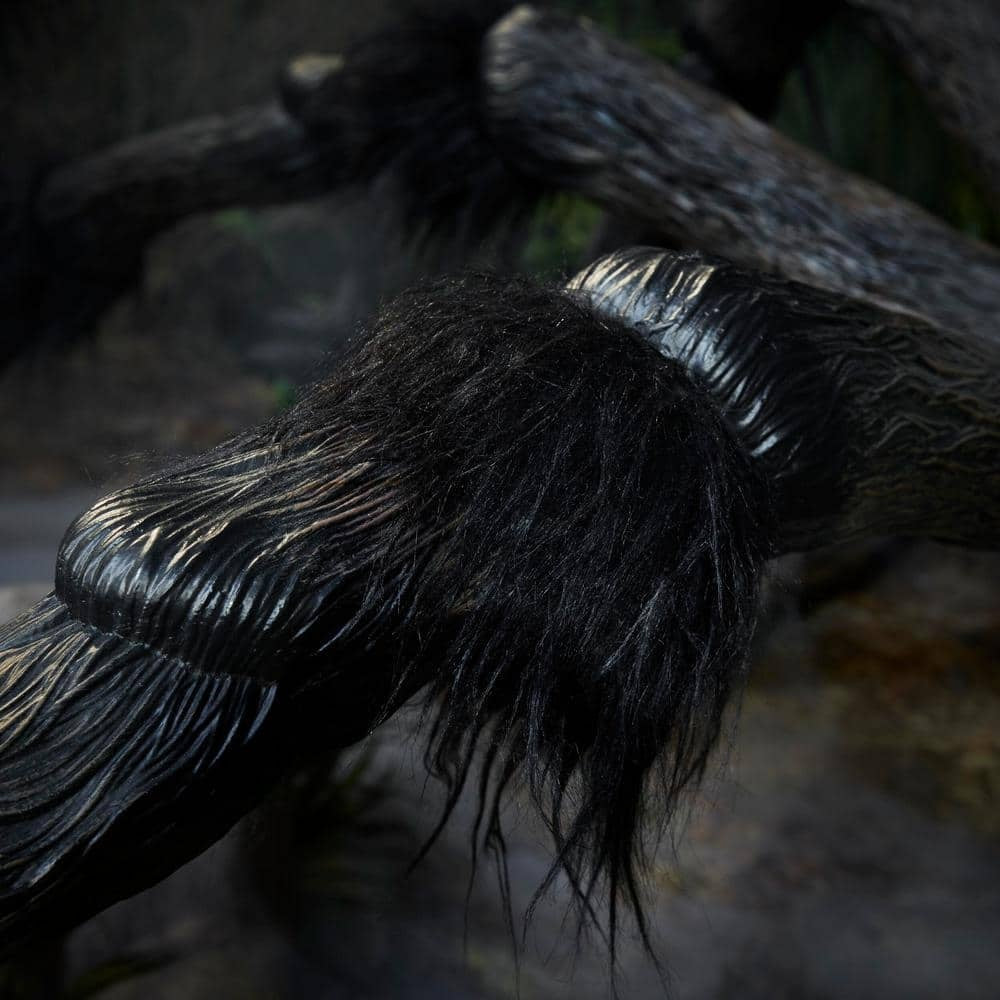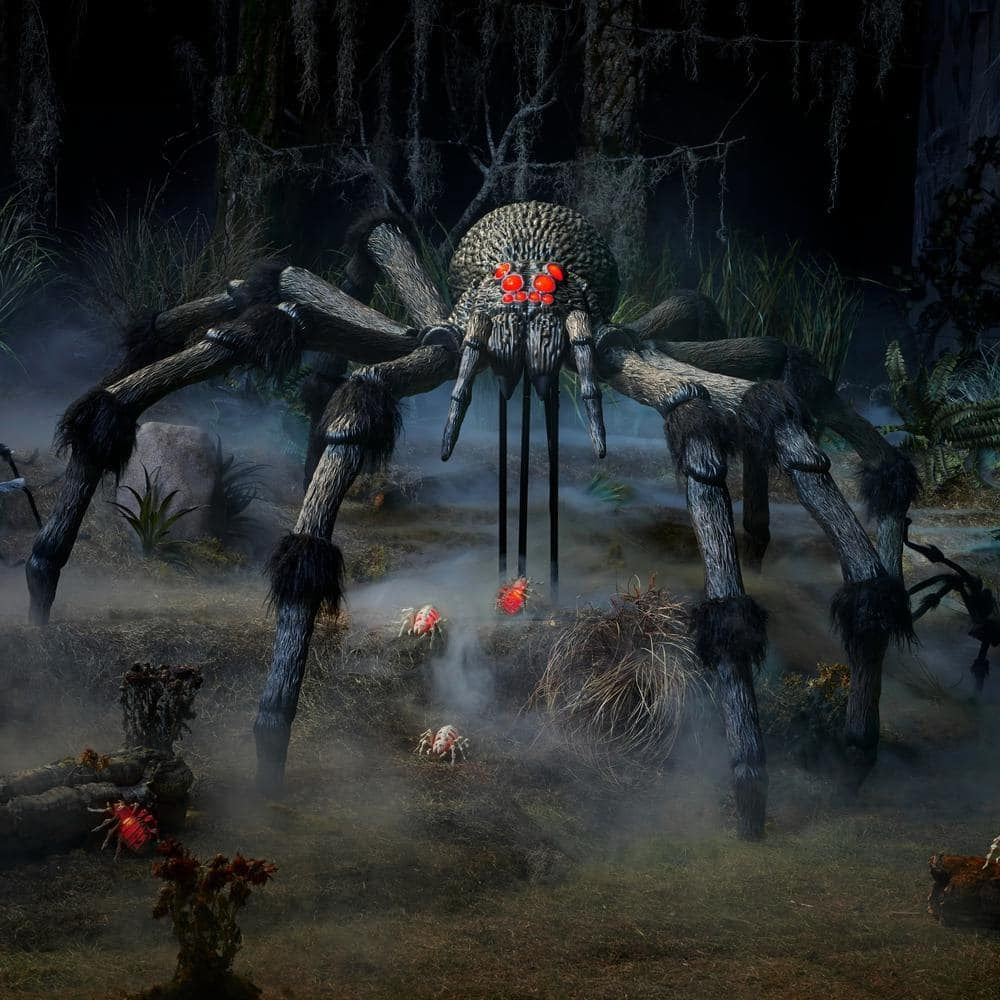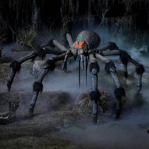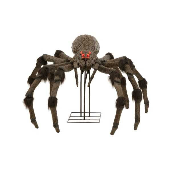 Realistic sculptural detailing is scary while posable legs move grotesquely to spook trick-or-treaters and guests