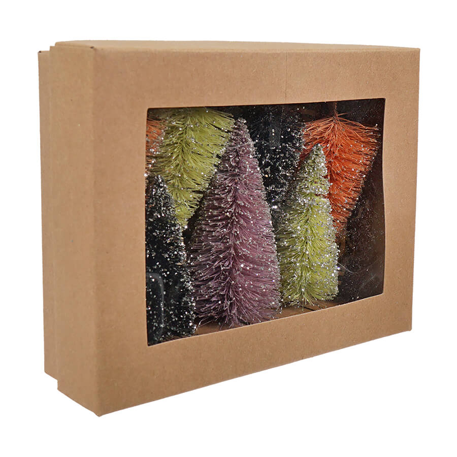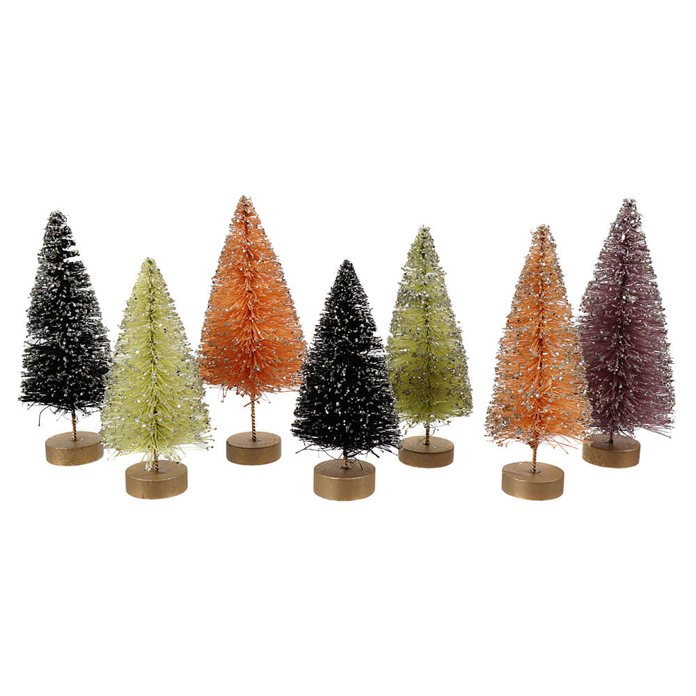 It's important to add all of the details to a Halloween village display! This boxed set of Neon Halloween Mini Trees will add the extra special detail that completes your village But! They are not just for a village anymore! You can use bottle brush trees to anchor a display or surround your figures and fill in those holes that will make you look like the superb decorator you are! So. make sure to add this set of Neon Halloween mini Bottle Brush trees to your collection. because all of the colored trees that are sprinkled with glitter will really finish off your Halloween displays. Did we say Halloween? Some of those colors. like the greens and purple could be added to your Easter and Valentine displays. Giving you extra bang for your buck!