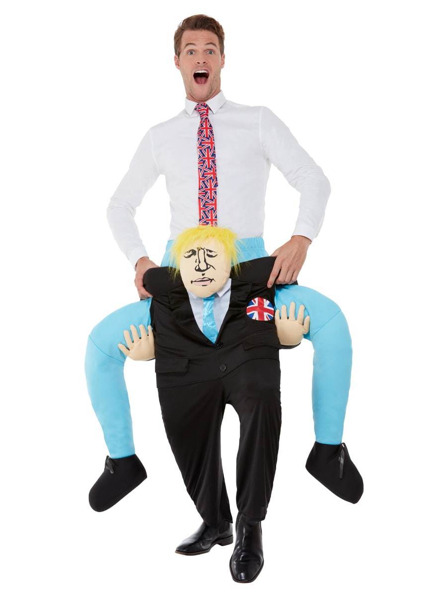 Piggyback BoJo Costume. This One Piece Suit with Mock Legs is inspired by Boris Johnson. and is the latest release in our range of politically inspired costumes.With Brexit just around the corner. this is bound to be a hit this Halloween.
