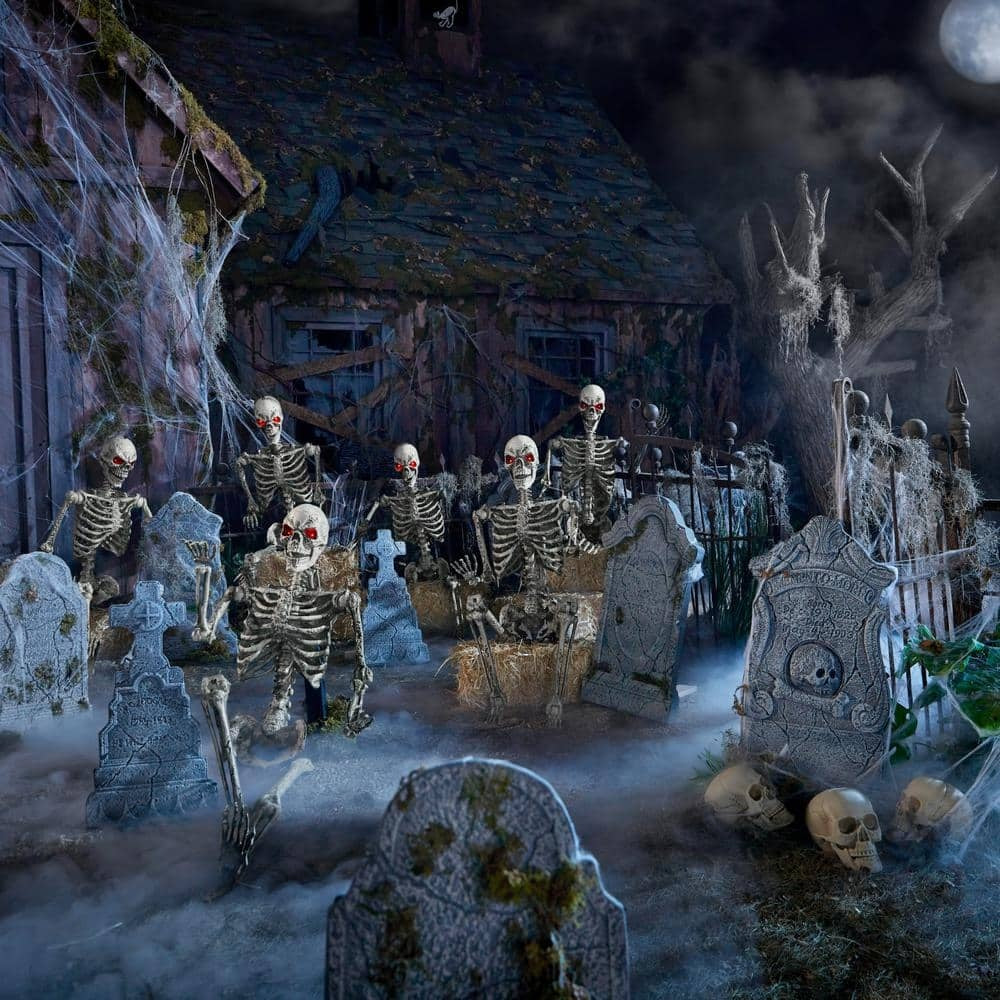 Set a scary scene with this six-pack of eerie Poseable Pitted Skeletons. These figures have poseable limbs so you can create the perfect scare and red LED eyes for extra spookiness.
