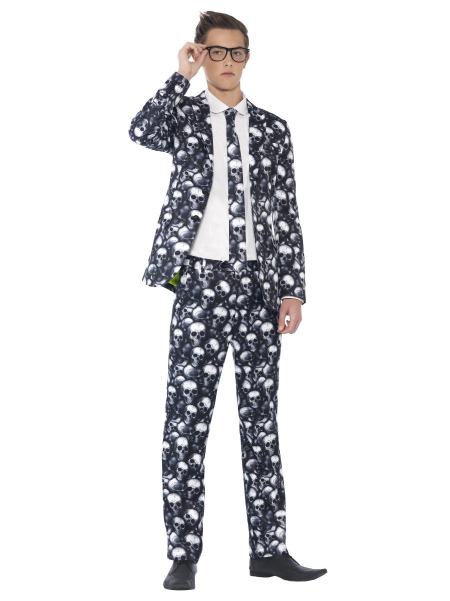 The Teen Skeleton Suit certainly isn't for the faint-hearted! With a printed jacket. trousers and tie this is one party look guaranteed to get you noticed!.