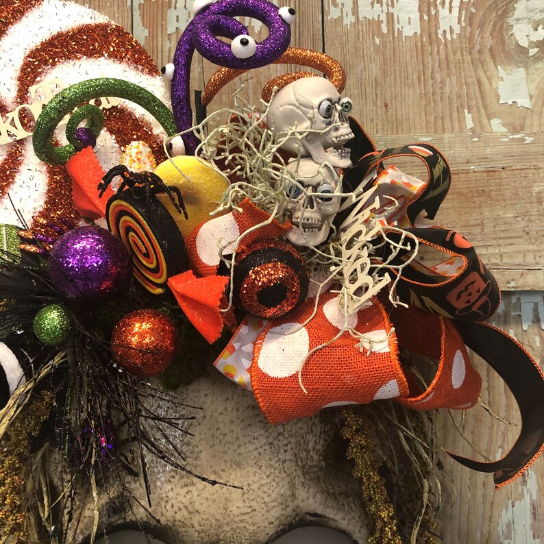 Skull decor, skull wreath, Halloween skull wreath, Halloween decor, animated skull head