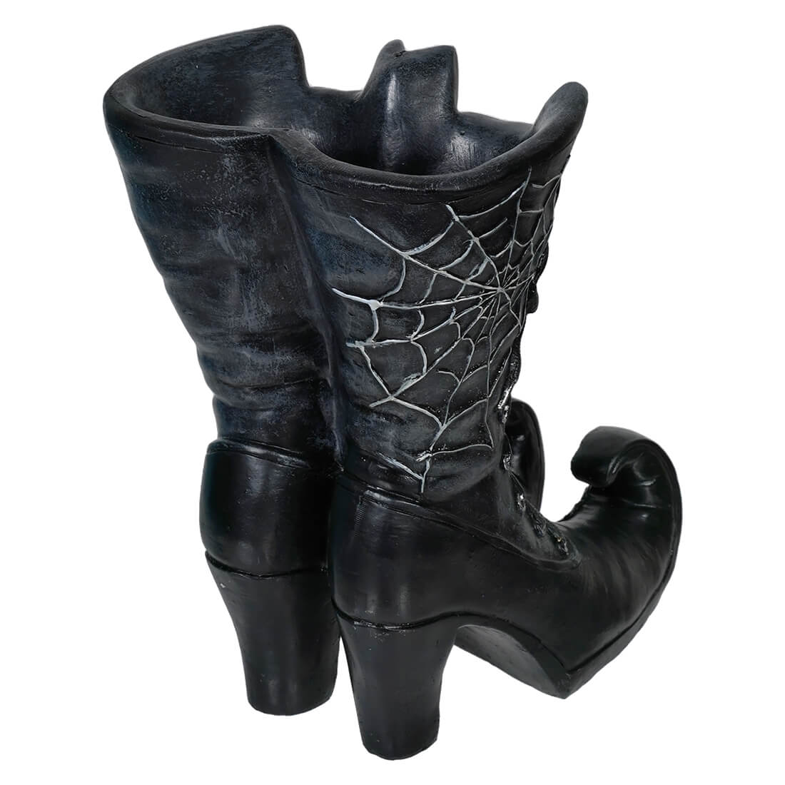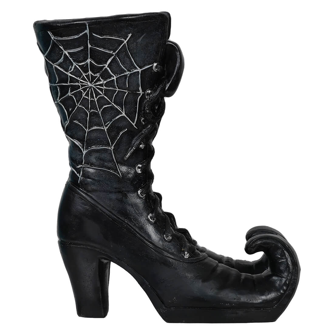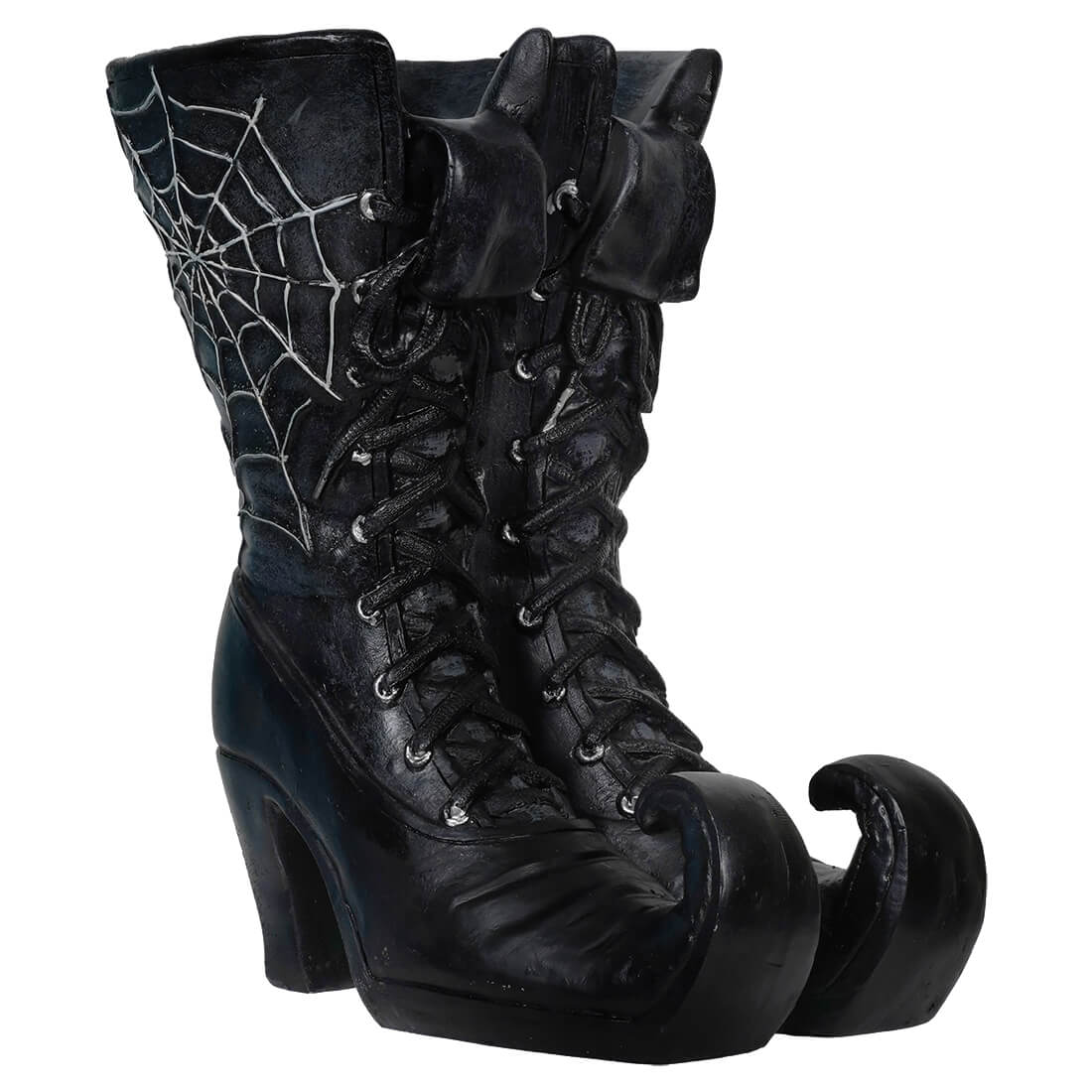 Crafted from durable resin. the black witch boots stood tall. their curled toes invoking a sense of mystery and intrigue. The intricate lace-up detail enticed curious minds. while the embossed silver web that adorned the boots added a dramatic flair. hinting at the mystical powers within.