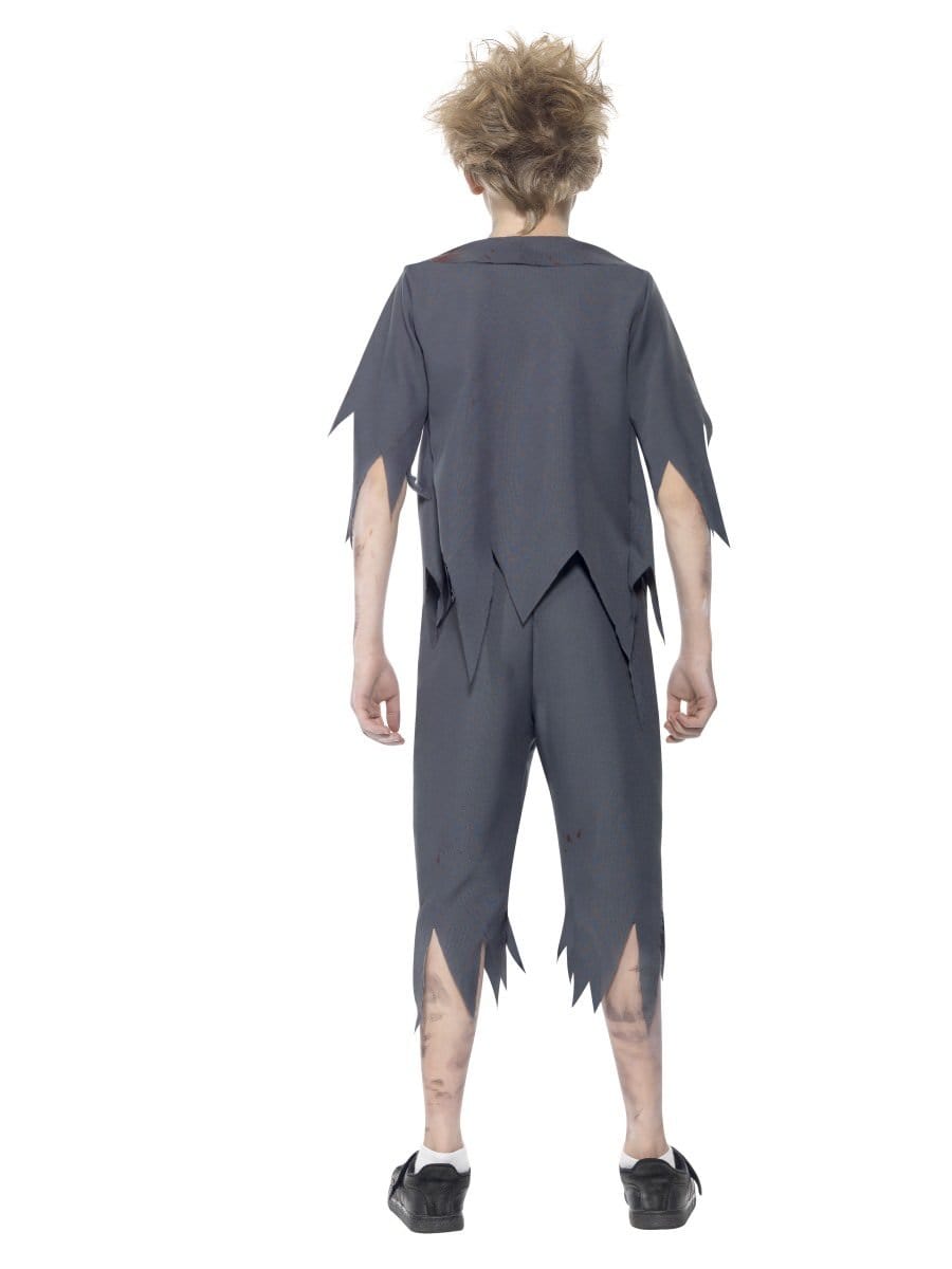 Get ready to feast on some flesh (or at least some candy!) in this Zombie School Boys costume. He'll scare all his mates as he prepares to rise from the dead in this blood splattered school uniform. Finish the look by applying some fake blood around the mouth and neck. and nail that vacant stare zombies seem so good at!.